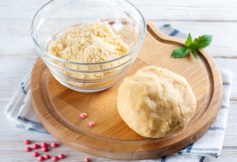 - Creusez un puits au centre et versez-y l'eau glacée et le jaune d'œuf (si vous l'utilisez).